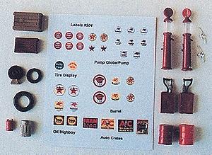 JL Innovative 505 HO Post 1940's Gas Station Detail Set (16) w/54 Signs