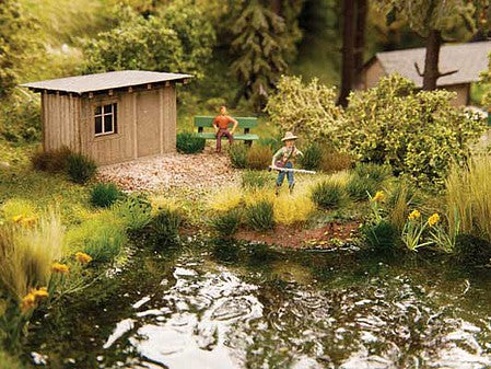 Noch 15560 HO Outhouse w/Toilet Stitters, Man Standing, Kissing Couple