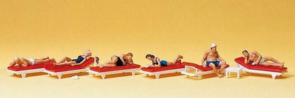 Preiser 10429 HO Scale Recreation & Sports -- Sunbathers on Lounges