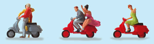Preiser 10607 HO Scale Three Vespa Scooters w/Riders