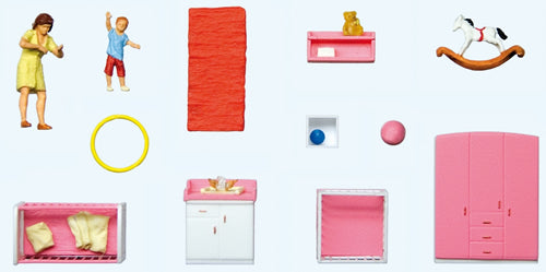 Preiser 10645 HO Scale Mother Changing Diapers -- Mother, Baby & Furniture