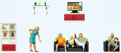 Preiser 10649 HO Scale Family Watching TV -- 5 Figures & Living Room Furniture