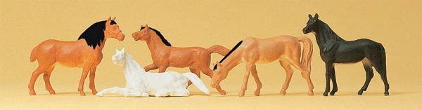 Preiser 14150 HO Scale Animals -- Horses pkg(5)