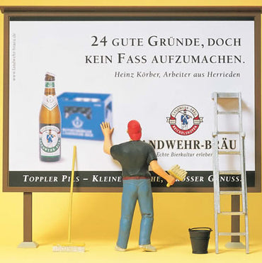 Preiser 45126 G Scale Working People -- Worker On Ladder, Putting Up Poster