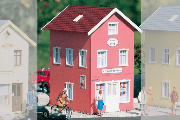 This hair salon integrates with other Garden City series structures such as Sunny Pharmacy (#62067). Designed for both indoor and outdoor use, it provides flexibility for collectors building garden railways or indoor town layouts.
