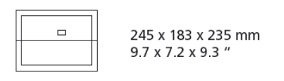 - Dimensions: 245 × 183 × 235 mm / 24.5 × 18.3 × 23.5 cm / 9.65" × 7.20" × 9.25"