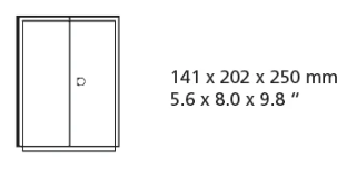 - Dimensions: 141 × 202 × 250 mm / 14.1 × 20.2 × 25 cm / 5.55" × 7.95" × 9.84"