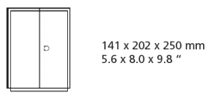 - Dimensions: 141 × 202 × 250 mm / 14.1 × 20.2 × 25 cm / 5.55" × 7.95" × 9.84"